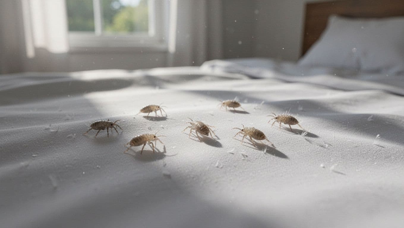 People report crawling sensations on skin. Dust-like specks appear on sheets or pillows. These mites cluster there seeking warmth. Check light-colored fabrics for movement.