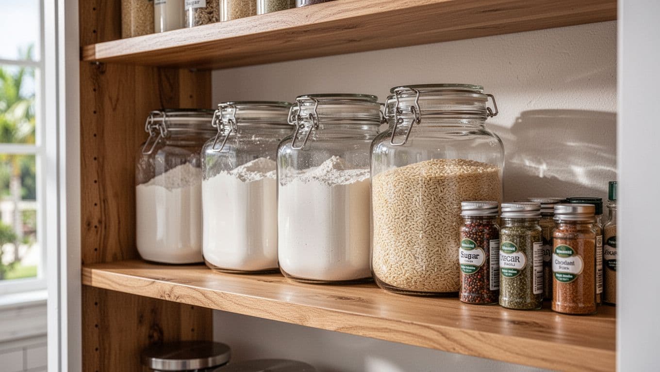 Run fans or dehumidifiers. Cut humidity below 60 percent. Cape Coral air stays moist. Dry pantries help most.