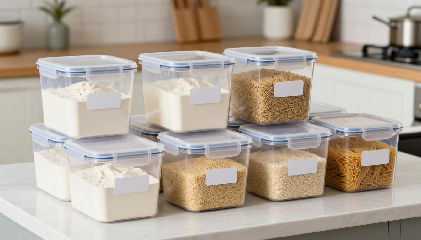 Store dry foods in airtight containers. Glass or thick plastic works best. Thin bags fail. Label and date them.