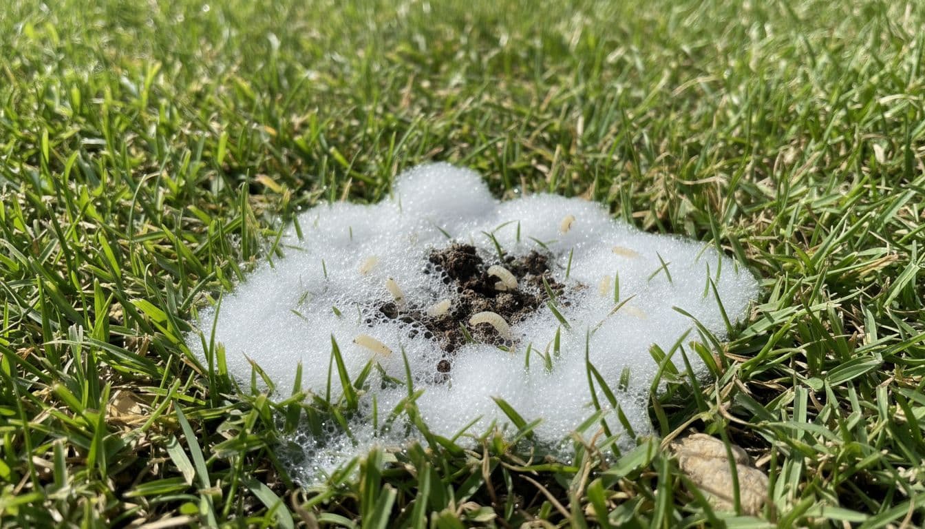 A soap flush can also help. Mix 1 to 2 tablespoons of mild dish soap in 1 gallon of water, then pour it over a small damaged area. Watch for a few minutes.