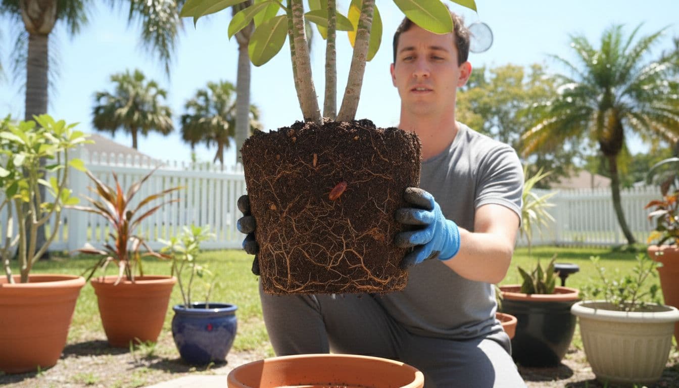 - Lift the root ball and look along the soil line, under the rim, and near drainage holes.
