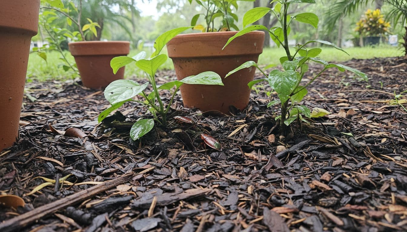 Next, work on drainage. Beds that puddle after rain, or stay wet from sprinkler runoff, give these roaches a long-term shelter. Raise low pots on feet, empty saucers after watering, and check whether irrigation hits the same area too often. If a bed stays soggy, loosen compacted soil or adjust grading so water moves away instead of pooling. That outside-first approach matches the Florida-style IPM advice most pros use, reduce moisture, remove shelter, then treat the hot spots.