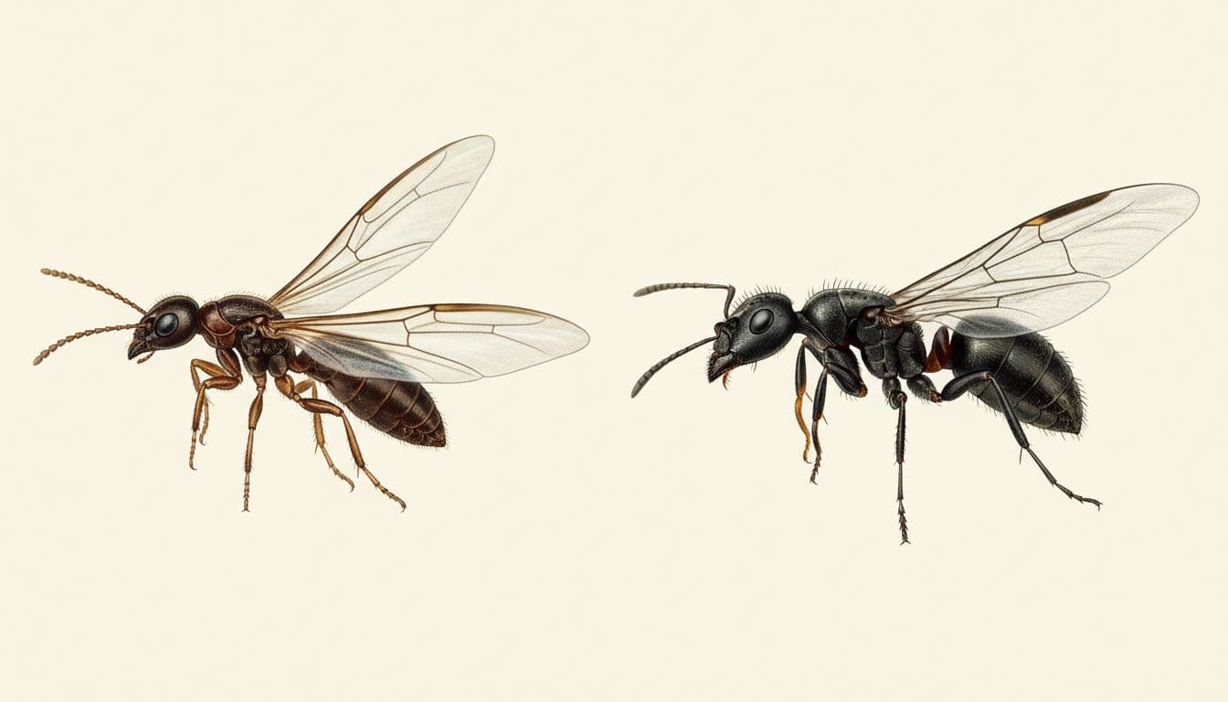 The good news is that a few simple body clues can help. Termite swarmers have a thicker, straighter body shape. Their wings are usually equal in size, and their antennae look straight or bead-like. Flying ants, on the other hand, have a pinched waist, bent antennae, and front wings that are longer than the back wings.