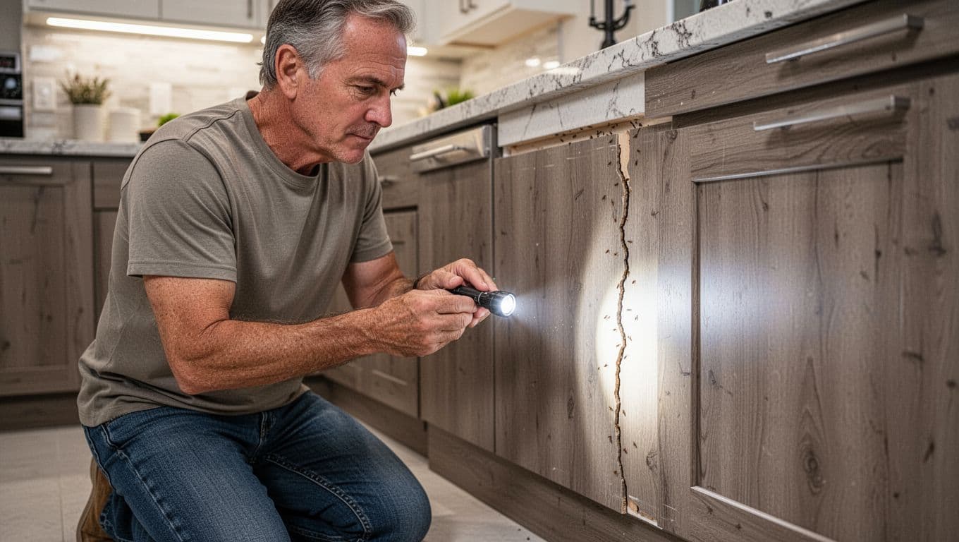 - Cabinet joints : Open doors and inspect hinges, seams, and screw holes.