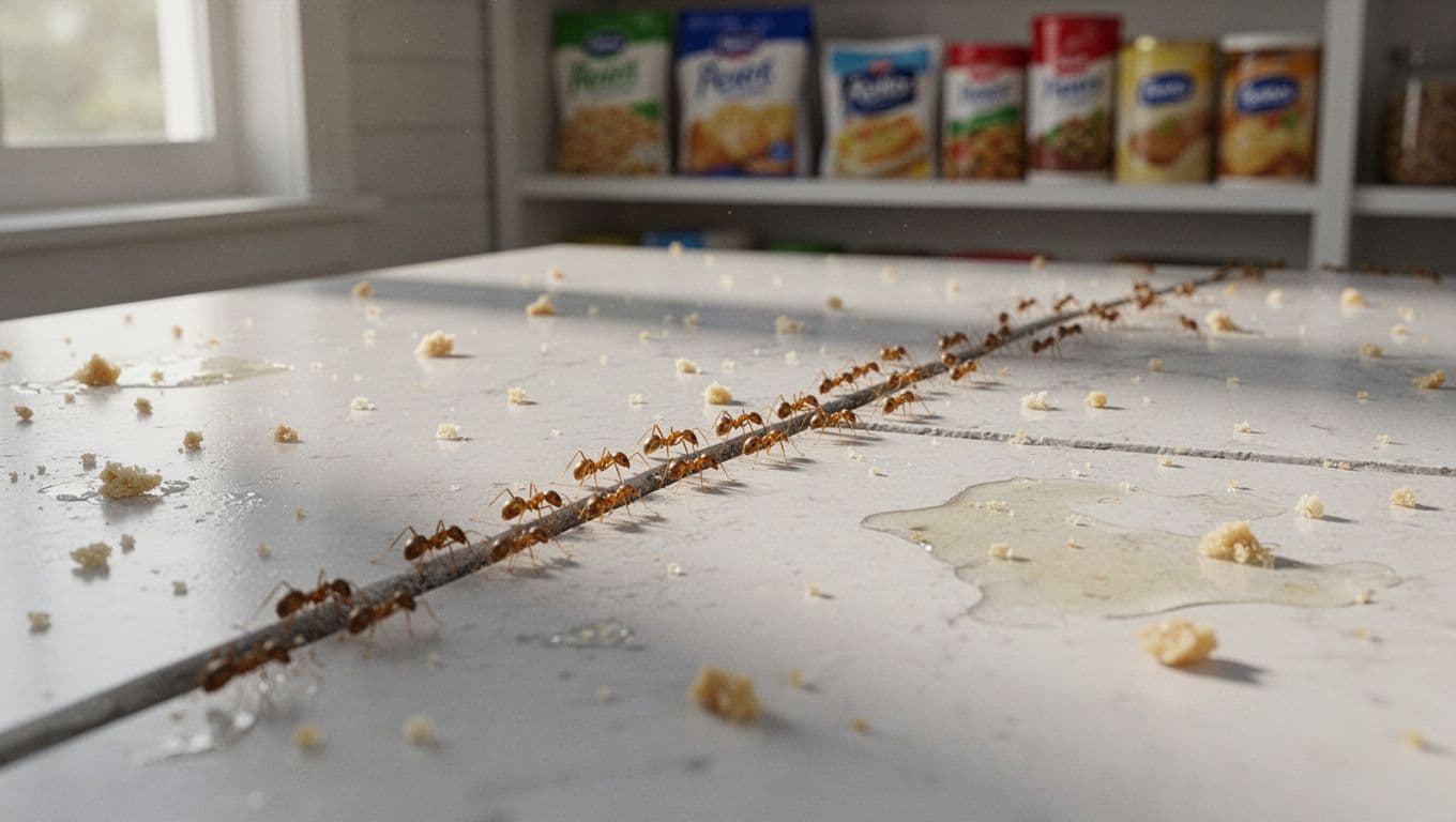 | Ants at counter seams | Hidden crumbs or grease in the joint | Inspect seams and wipe with a degreasing cleaner |